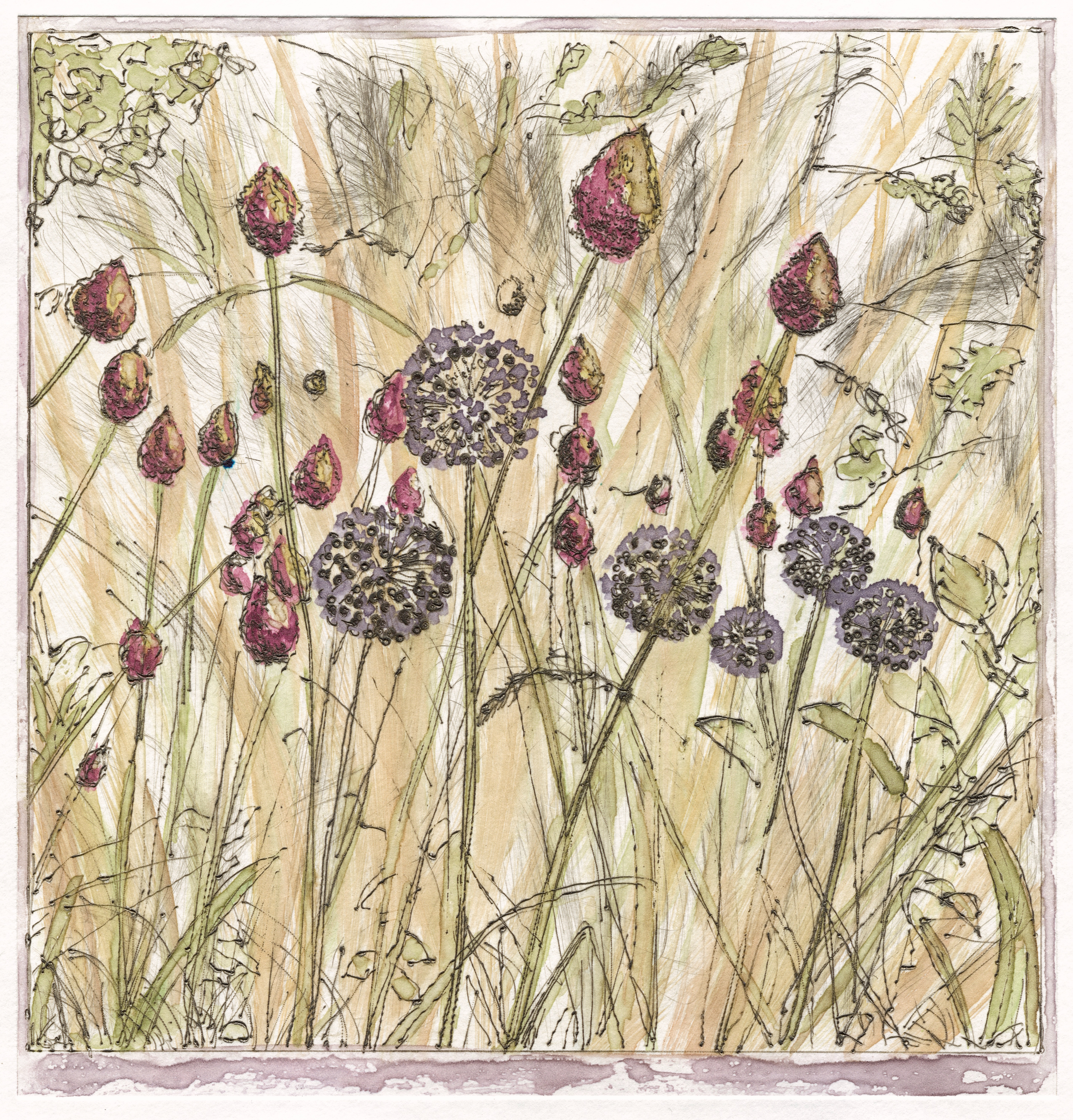 Based in Worcestershire, Alison draws deep inspiration from the British countryside and the rhythms of nature. Her mixed-media practice explores the intersection of nature, land use, and traditional craft, utilizing earth pigments, safe inks, and harvested materials.