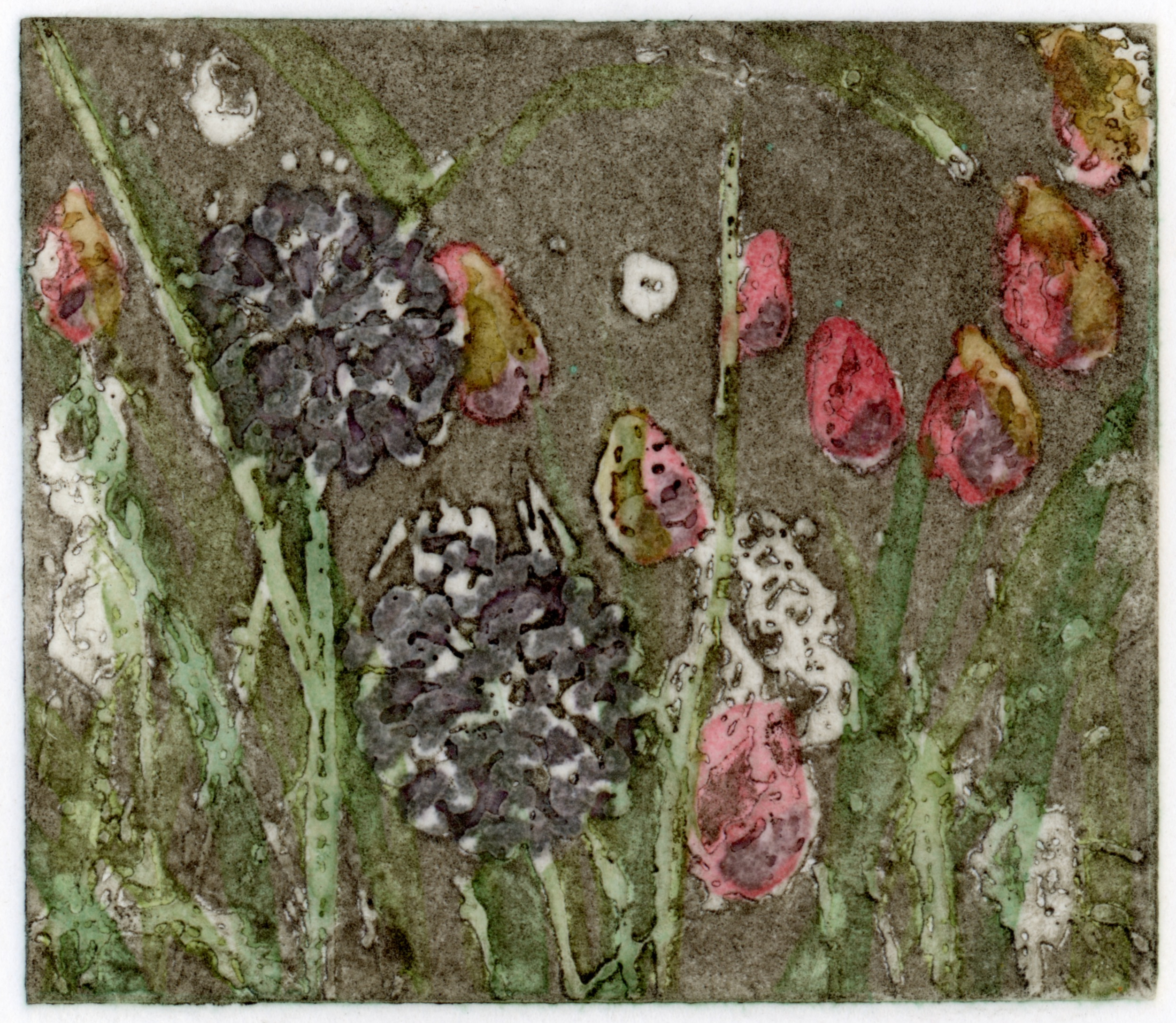 Intaglio: Relief Etching, Drypoint, À la poupée and Chine-collé using brass, copper and styrene